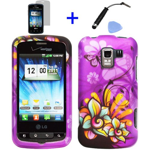 4pcs Combo: Mini Stylus Pen + LCD Screen Protector Film + Case Opener + Purple Butterfly Orange Pink Green Color Daisy Flower Features.