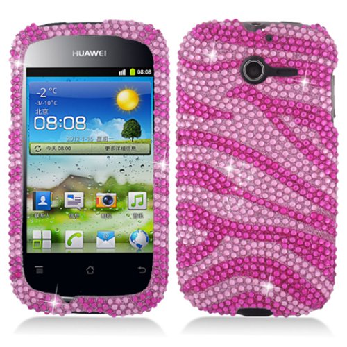 LF PINK Zebra Designer Rhinestone Hard Case Proctor Cover, Lf Stylus Pen and Screen Wiper Bundle Accessory for Straight Talk Overviews.