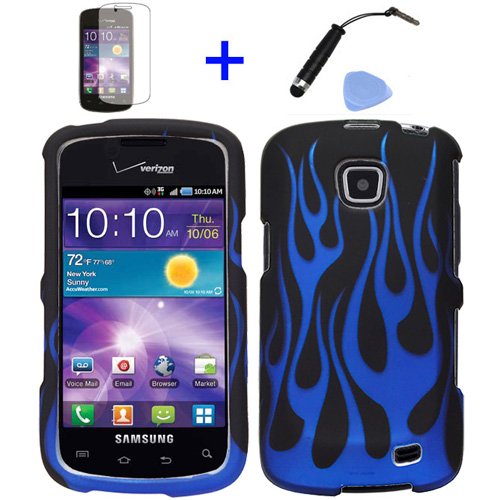 Including High Quality Premium LCD Screen Protector Film /w Cleaning Cloth.Including Front and Back Graphic Design Snap on Hard Plastic Cover Protector Case with Rubberized Exterior Coating.Including mini Stylus Pen, Compatible with most capacitive Touch Screen Device!.Compatible with: Straight Talk Samsung Galaxy Proclaim 720C SCH-S720C / Verizon Samsung Illusion i110.Including Snap on Case Opening Tool so that you can take off your phone case more easily!..touch screen straight talk phones 4 items Combo: Mini Stylus Pen + LCD Screen Protector Film + Case Opener + Black Blue Flame Design Rubberized Snap on Hard Shell Features.