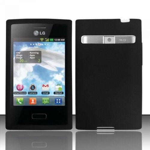 touch screen straight talk phones Bundle Accessory for Straight Talk Net 10 LG Optimus Logic L35g Dynamic L38c - Black Silicone Rubber Skin Designer Protective Overviews.