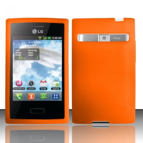 touch screen straight talk phones Bundle Accessory for Straight Talk Net 10 LG Optimus Logic L35g Dynamic L38c - Orange Silicone Rubber Skin Designer Protective Overviews.
